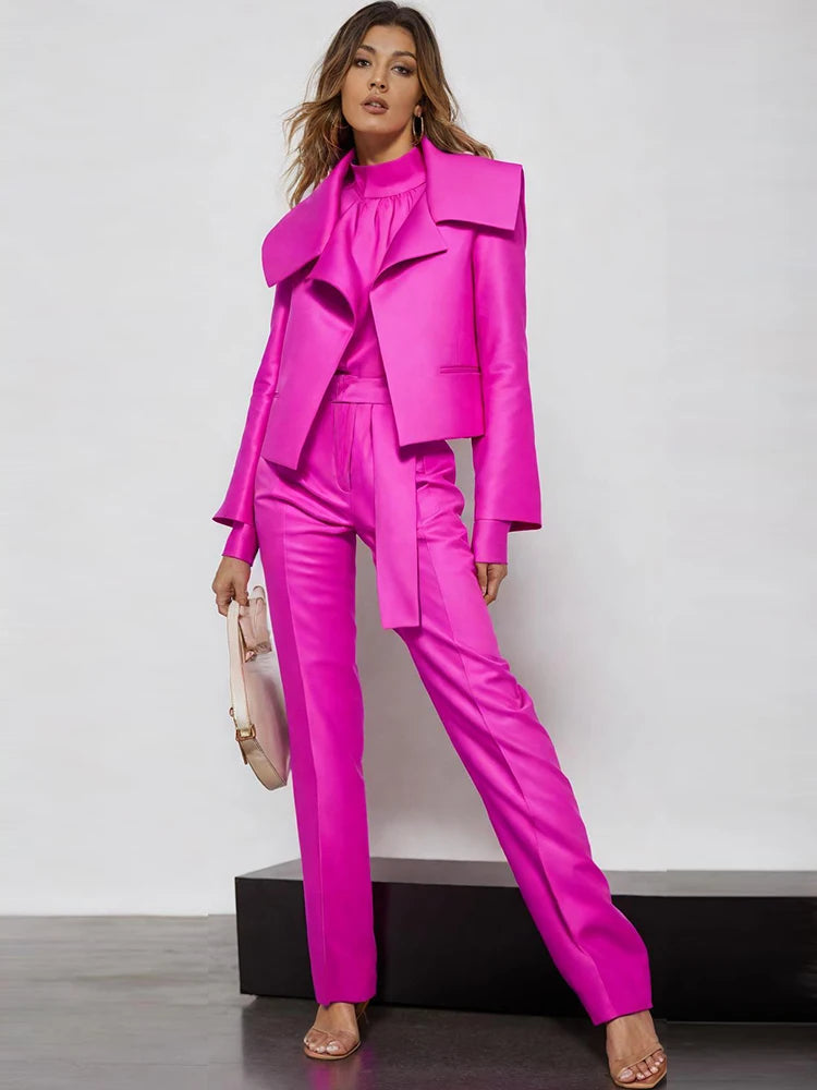 O Conjunto Positano celebra a força de uma mulher que não passa despercebida. Em tom vibrante e acabamento acetinado, ele traduz a ousadia elegante de quem sabe exatamente quem é. A jaqueta estruturada com design assimétrico cria impacto instantâneo, enquanto a calça de alfaiataria ajustada alonga a silhueta com sofisticação contemporânea.