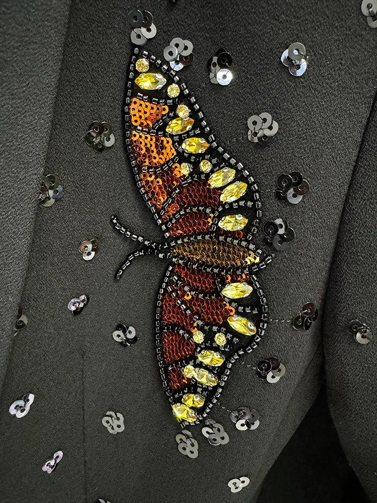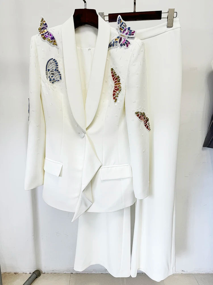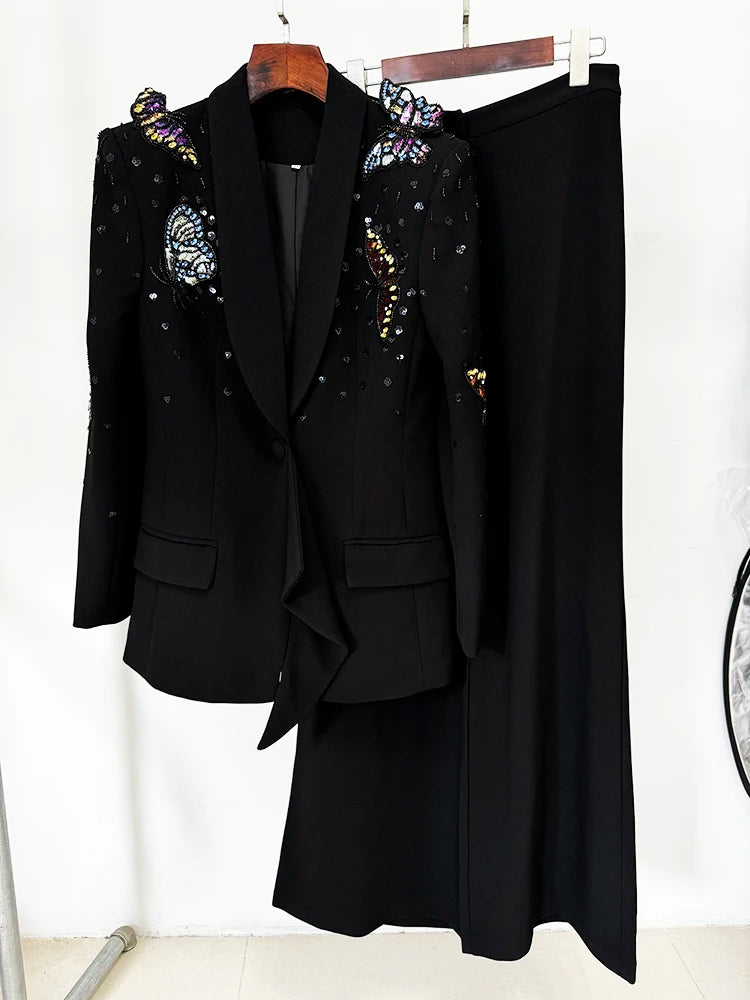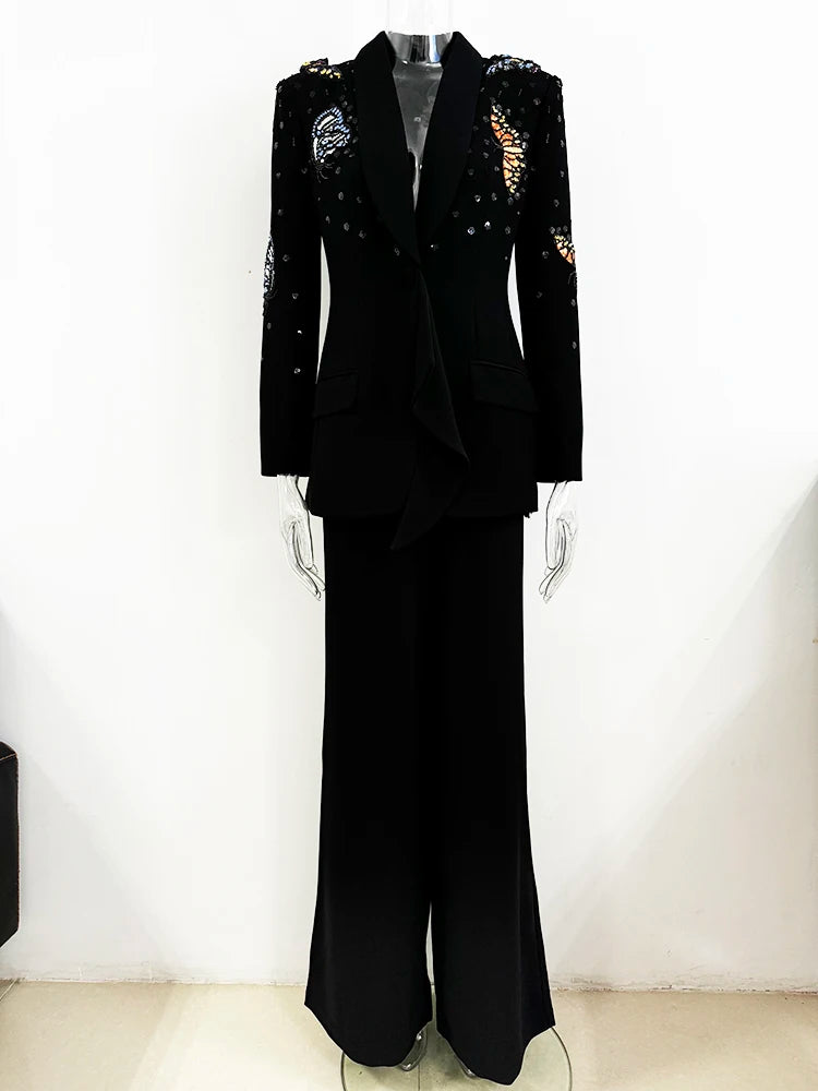Elegância que ilumina. O Conjunto Majestic Aurora combina um blazer slim sofisticado com bordados luxuosos e uma calça de perna ampla que traz movimento e imponência ao visual. O blazer possui shape acinturado, lapelas marcantes e acabamento refinado que traduzem presença e autoridade. Já a calça entrega conforto, caimento fluido e cintura média que alonga a silhueta com naturalidade.