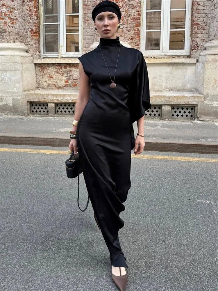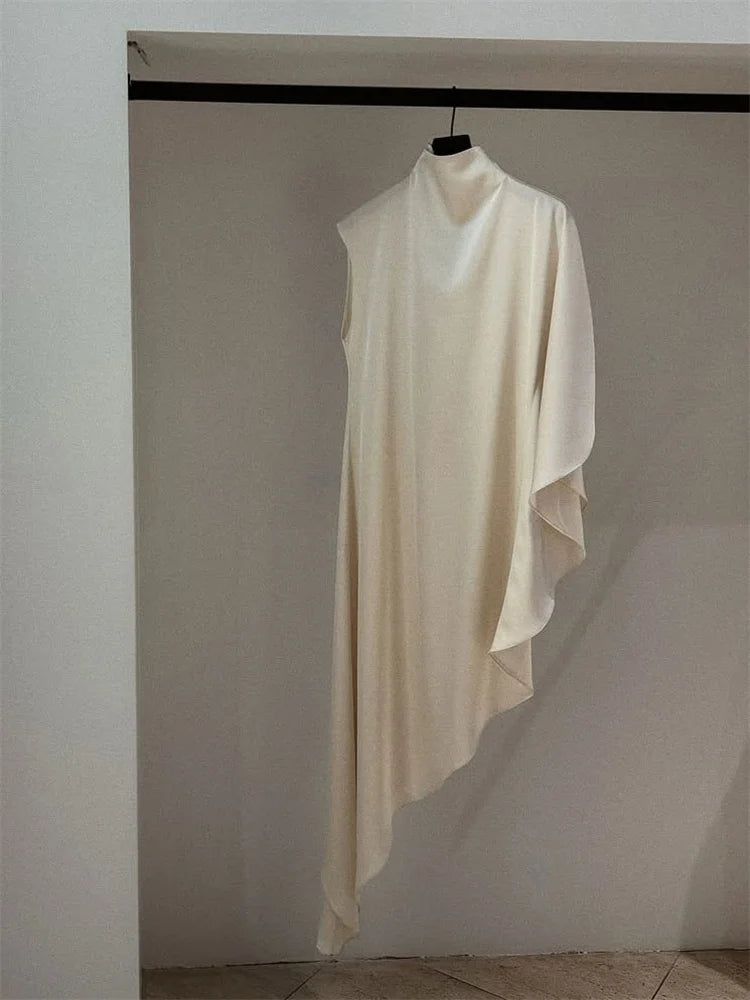 O Vestido Aura di Seta traduz contemporaneidade com sua gola alta estruturada, caimento fluido em cetim e manga assimétrica que adiciona movimento e sofisticação. Seu design limpo e atemporal valoriza a silhueta de forma sutil, criando um look elegante e moderno para eventos especiais, jantares, celebrações ou ocasiões em que a presença precisa falar por si.
