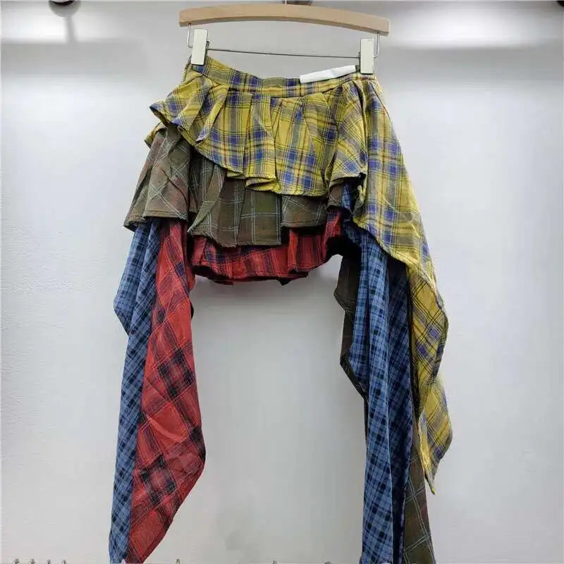 A Saia Xadrez Palermo traz um design contemporâneo e irreverente, unindo recortes assimétricos, mix de xadrez em patchwork e fitas laterais que criam movimento único. De cintura alta e modelagem A-line, valoriza a silhueta e garante destaque imediato ao look. Ideal para composições urbanas com toque fashionista.