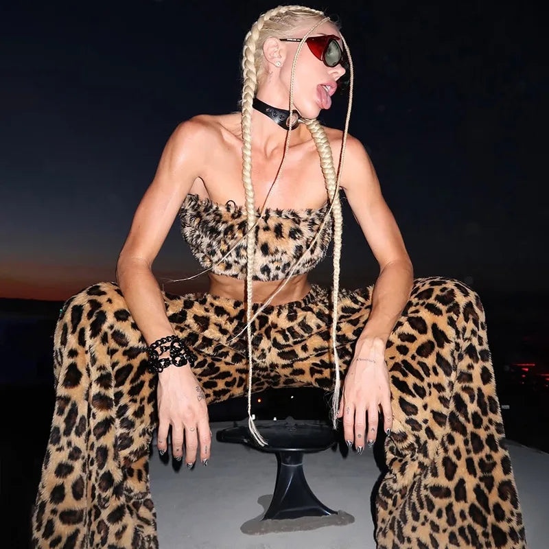 Unindo a estampa animal print, um clássico atemporal da moda, com uma modelagem ultra moderna, este duo de peças é a escolha definitiva para quem busca impacto e conforto em um único look.