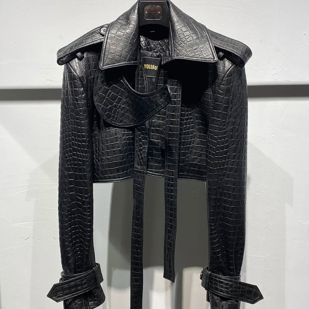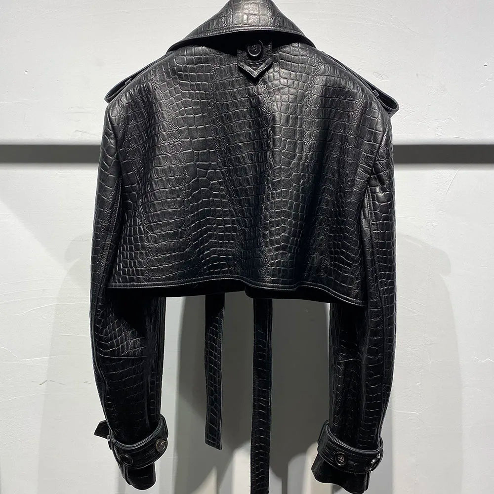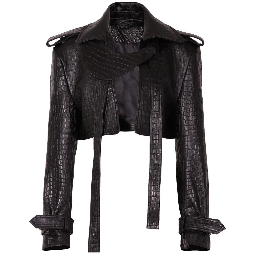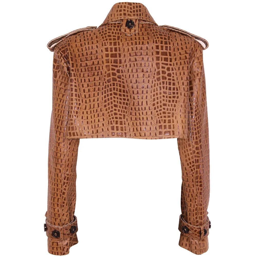 Se você busca uma peça que fuja totalmente do comum, a Jaqueta Cropped Croco Avant-Garde foi feita para você.